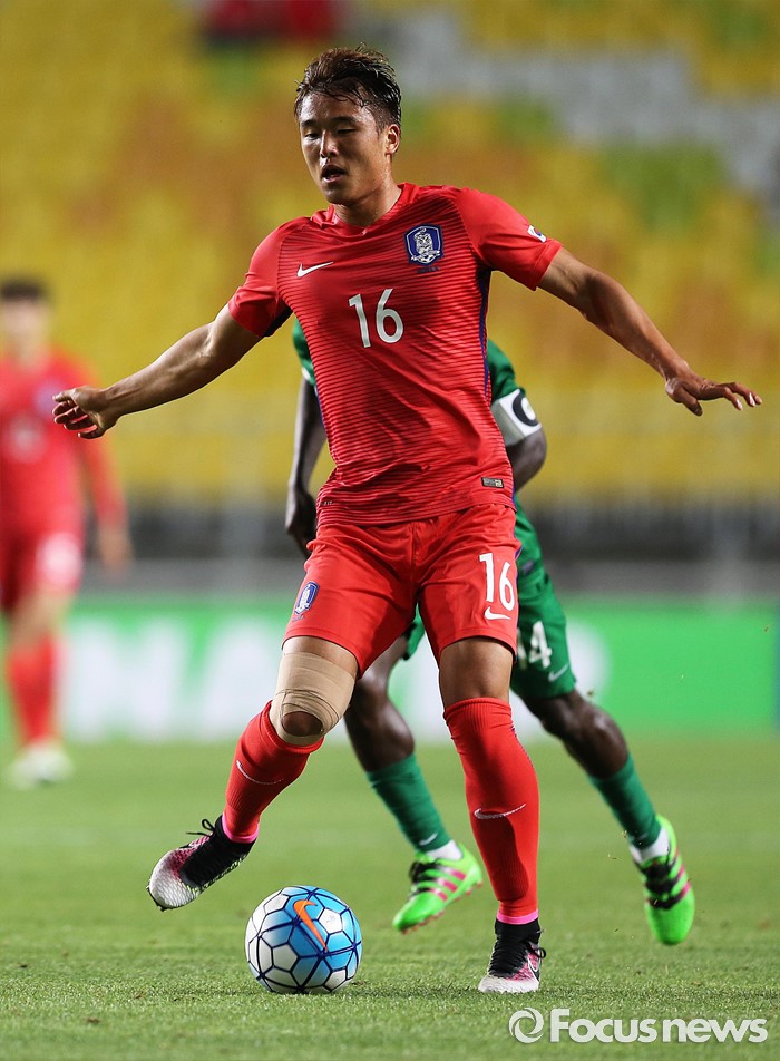 (수원=포커스뉴스) 2일 오후 경기 수원월드컵경기장에서 열린 2016 4개국 올림픽국가대표 축구대회 대한민국과 나이지리아의 경기에서 대한민국 이찬동이 드리블을 하고 있다.