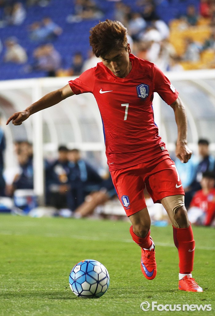 (수원=포커스뉴스) 2일 오후 경기 수원월드컵경기장에서 열린 2016 4개국 올림픽국가대표 축구대회 대한민국과 나이지리아의 경기에서 대한민국 문창진이 크로스를 시도하고 있다.