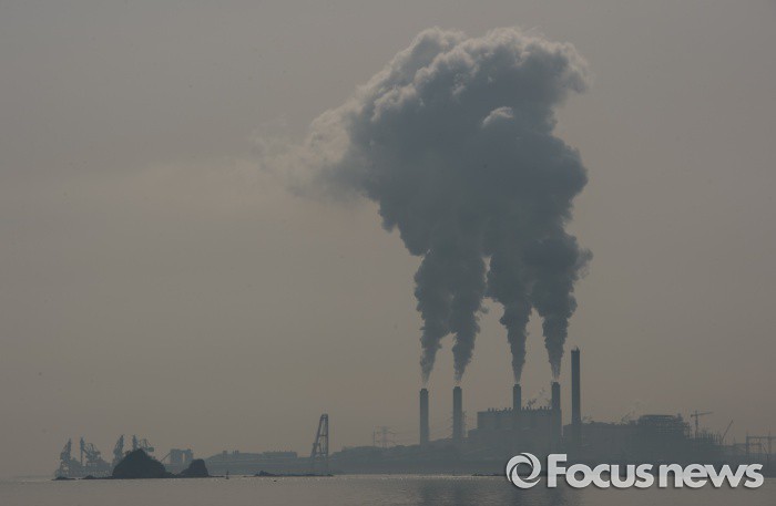 (안산=포커스뉴스) 경기도 안산시 육도에서 바라본 충남 당진의 한 화력발전소의 굴뚝에서구름같은 수증기가 나오고 있다. 정부는 3일 미세먼지 대책발표에서 노후된 화력발전소의 설비를 교체하기로 가닥을모으고 있다.
