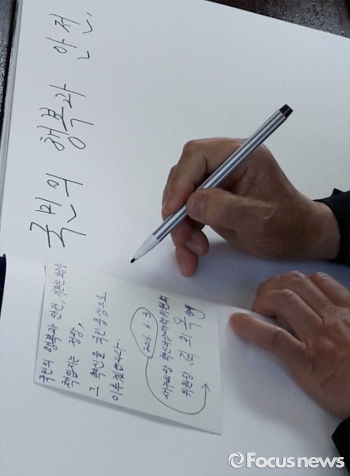 | △ 방명록 글귀 적어 온 김희옥 혁신비대위원장 |