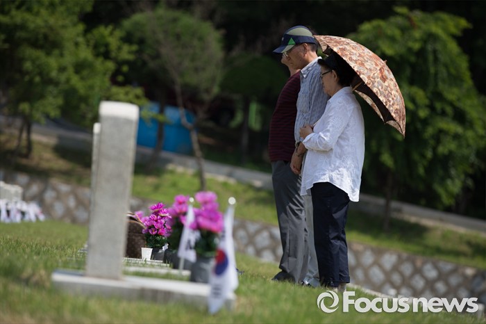 (서울=포커스뉴스) 현충일을 사흘 앞둔 3일 오전 서울 동작구 국립서울현충원에서 유가족들이 국가유공자묘역을 찾고 있다.