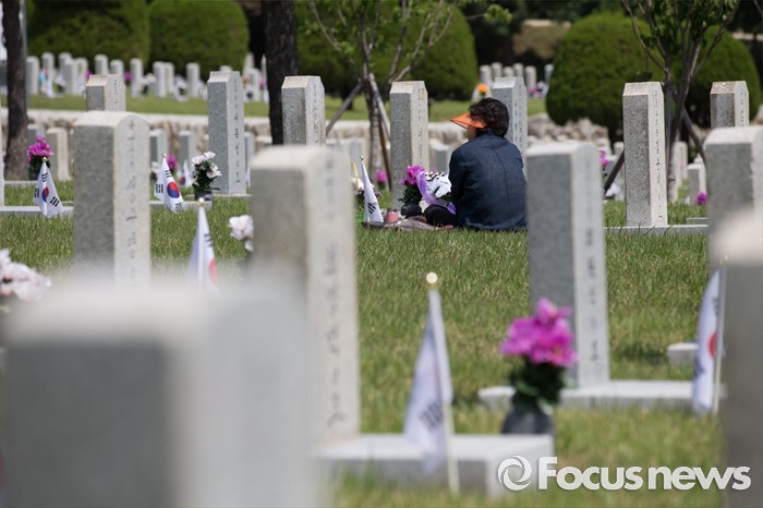 (서울=포커스뉴스) 현충일을 사흘 앞둔 3일 오전 서울 동작구 국립서울현충원에서 유가족이 국가유공자묘역을 찾고 있다.