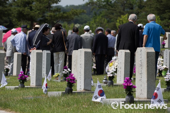 (서울=포커스뉴스) 현충일을 사흘 앞둔 3일 오전 서울 동작구 국립서울현충원에서 시민들이 국가유공자묘역을 찾고 있다.