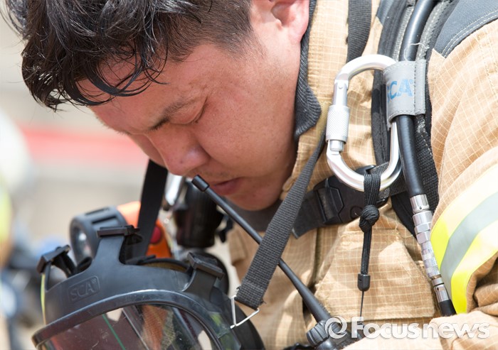 (청주=포커스뉴스) 3일 오전 충북 청주 무심천시민체육공원에서 열린 충북소방기술경연대회에 참가한 소방대원들이 기량을 겨루고 있다.
