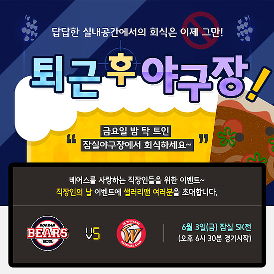 (서울=포커스뉴스) 프로야구 두산이 3일 잠실구장에서 열리는 SK와의 경기에 '직장인의 날-퇴근 후 야구장으로!' 행사를 연다.