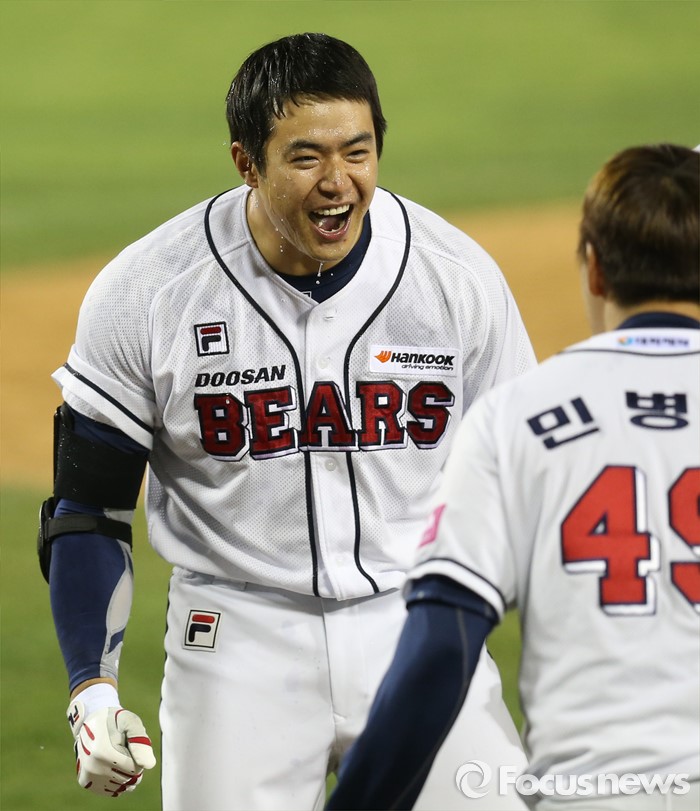 (서울=포커스뉴스) 프로야구 두산 김재환이 생애 첫 KBO리그 월간 최우수선수(MVP) 기쁨을 맞았다.