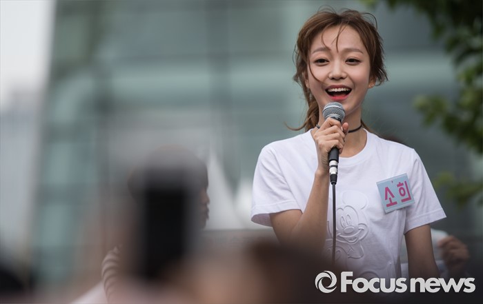 (서울=포커스뉴스) 3일 오후 서울 광진구 건대입구 스타시티 광장에서 가수 김소희가 인사말을 하고 있다.
