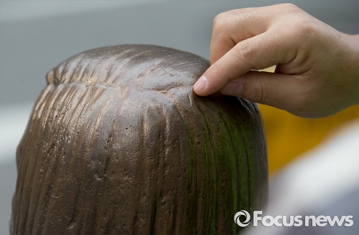 (서울=포커스뉴스) 3일 오후 서울 종로구 구 일본대사관 앞에서 농성 중인 한일 위안부 합의 폐기 및 소녀상 철거 반대 대학생행동 관계자들이 소녀상을 살펴보고 있다. 종로경찰서는 이날 낮 12시30분께 소녀상의 머리 부분을 약 40cm 길이의 망치로 수차례 내려친 A(33)씨를 현행범으로 체포해 조사하고 있다고 전했다.