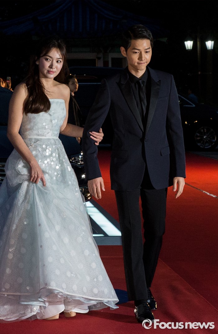 (서울=포커스뉴스) 3일 오후 서울 동대문구 경희대학교 평화의전당에서 열린 '2016 백상예술대상'에 참석한 배우 송중기-송혜교가 레드카펫을 밟고 있다.