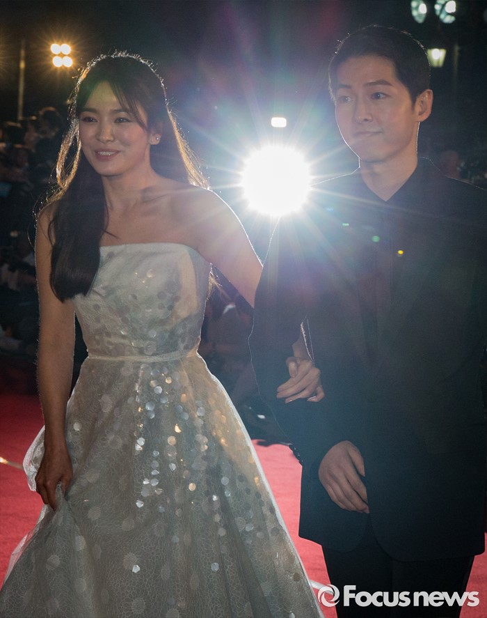(서울=포커스뉴스) 3일 오후 서울 동대문구 경희대학교 평화의전당에서 열린 '2016 백상예술대상'에 참석한 배우 송중기-송혜교가 레드카펫을 밟고 있다.