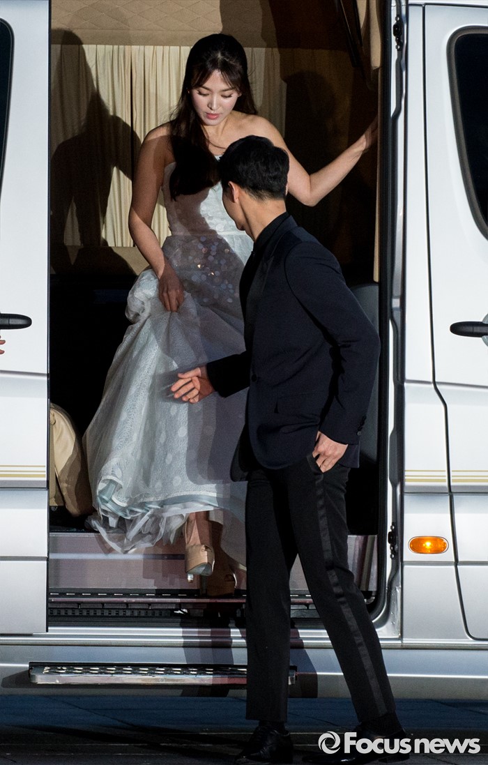 (서울=포커스뉴스) 3일 오후 서울 동대문구 경희대학교 평화의전당에서 열린 '2016 백상예술대상'에 참석한 배우 송중기-송혜교가 레드카펫을 밟고 있다.