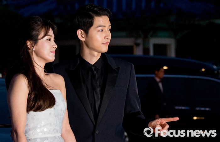 (서울=포커스뉴스) 3일 오후 서울 동대문구 경희대학교 평화의전당에서 열린 '2016 백상예술대상'에 참석한 배우 송중기-송혜교가 레드카펫을 밟고 있다.