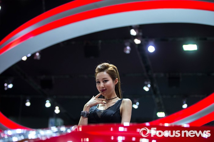 (부산=포커스뉴스) 3일 오후 부산 해운대구 벡스코에서 '2016 부산 국제모터쇼'가 공식 개막한 가운데 레이싱걸이 관람객들을 향해 포즈를 취하고 있다. 이번 국제모터쇼는 오는 12일 까지 계속 된다.