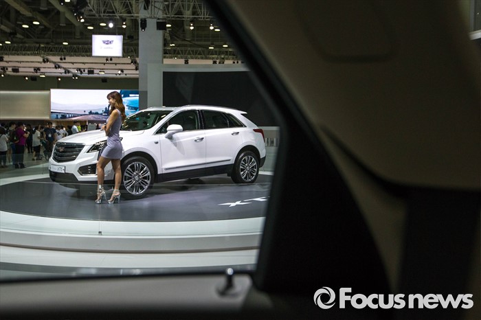 (부산=포커스뉴스) 3일 오후 부산 해운대구 벡스코에서 '2016 부산 국제모터쇼'가 공식 개막한 가운데 레이싱걸이 관람객들을 향해 포즈를 취하고 있다. 이번 국제모터쇼는 오는 12일 까지 계속 된다.