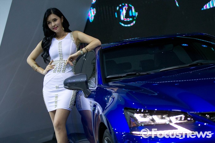 (부산=포커스뉴스) 3일 오후 부산 해운대구 벡스코에서 '2016 부산 국제모터쇼'가 공식 개막한 가운데 레이싱걸이 관람객들을 향해 포즈를 취하고 있다. 이번 국제모터쇼는 오는 12일 까지 계속 된다.