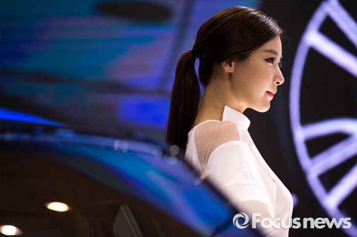(부산=포커스뉴스) 3일 오후 부산 해운대구 벡스코에서 '2016 부산 국제모터쇼'가 공식 개막한 가운데 레이싱걸이 관람객들을 향해 포즈를 취하고 있다. 이번 국제모터쇼는 오는 12일 까지 계속 된다.
