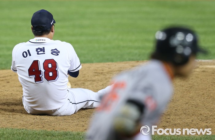 | △ 마운드에 주저 앉은 두산 이현승 |