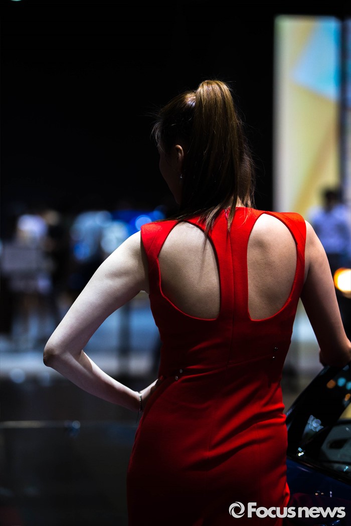 (부산=포커스뉴스) 3일 오후 부산 해운대구 벡스코에서 '2016 부산 국제모터쇼'가 공식 개막한 가운데 레이싱걸이 관람객들을 향해 포즈를 취하고 있다. 이번 국제모터쇼는 오는 12일 까지 계속 된다.