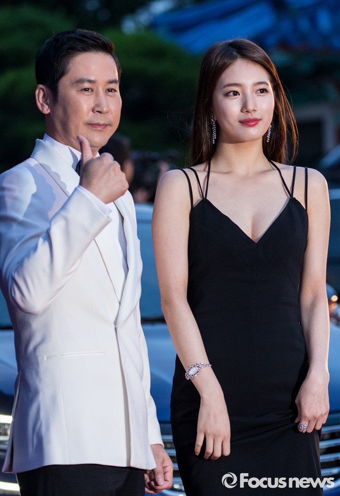 (서울=포커스뉴스) 3일 오후 서울 동대문구 경희대학교 평화의전당에서 열린 '2016 백상예술대상'에 참석한 개그맨 신동엽과 미쓰에이 수지가 레드카펫을 밟고 있다.