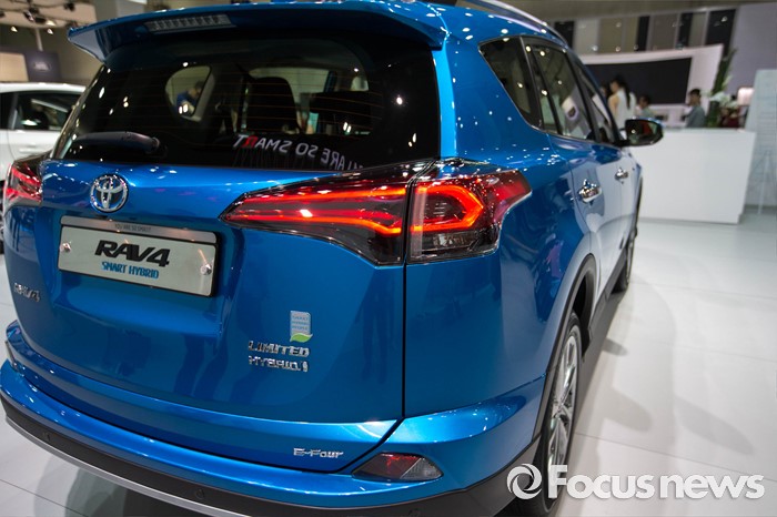 (부산=포커스뉴스) 3일 오전 부산 해운대구에 위치한 벡스코에서 열린 '2016 부산국제모터쇼'에 도요타 '라브4 하이브리드' 차량이 전시되어 있다.
