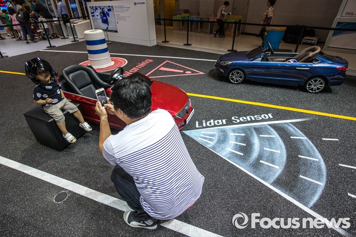 (부산=포커스뉴스) 3일 오후 부산 해운대구에 위치한 벡스코에서 열린 '2016 부산국제모터쇼'에서 관람객들현대차 부스를 찾아 미니운전 행사를 체험하고 있다.