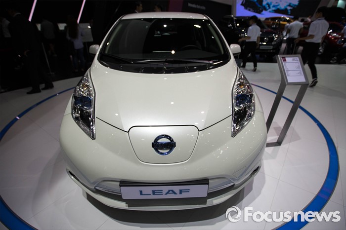 (부산=포커스뉴스) 3일 오후 부산 해운대구에 위치한 벡스코에서 열린 '2016 부산국제모터쇼'에 토요타의 전기차 '리프' 차량이 전시되어 있다.