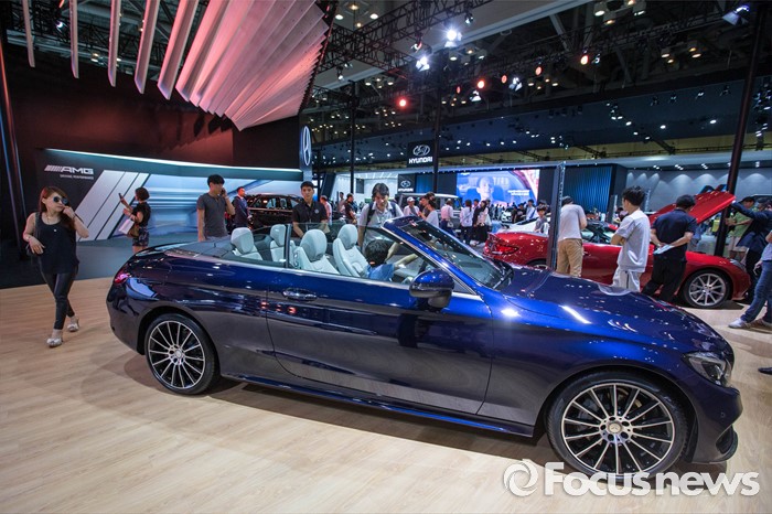 (부산=포커스뉴스) 3일 오후 부산 해운대구에 위치한 벡스코에서 열린 '2016 부산국제모터쇼'에 벤츠 '뉴 C 클래스 카브리올레' 차량이 전시되어 있다.