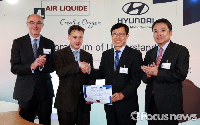 (서울=포커스뉴스) 현대자동차는 수소전기차 시장의 글로벌 리더십을 확보하기 위해 지난 4일 프랑스의 산업용 가스회사인 에어리퀴드와 양해각서 (MOU)를 체결했다.