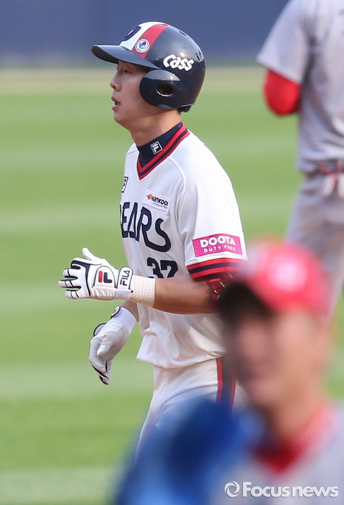 (서울=포커스뉴스) 5일 서울 잠실구장에서 열린 2016프로야구 SK-두산 경기 3회말 두산 선두타자 박건우가 좌월 솔로 홈런을 치고 베이스를 돌고 있다.