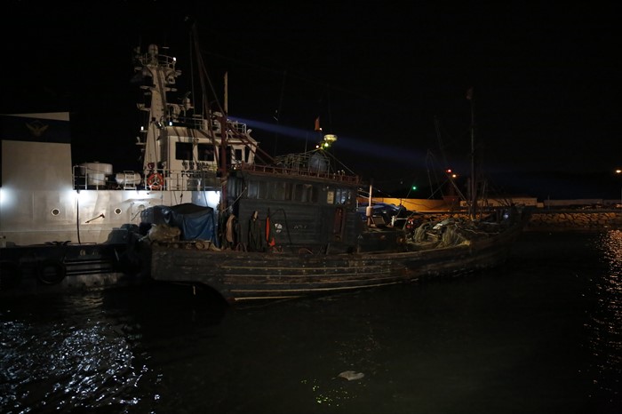 (서울=포커스뉴스) 6일 오전 인천해양경비안전서 전용부두에 서해 연평도 북방한계선(NLL) 인근에서 조업하다 우리 어민들에게 나포된 중국어선이 입항해 있다. <사진제공=인천해경>