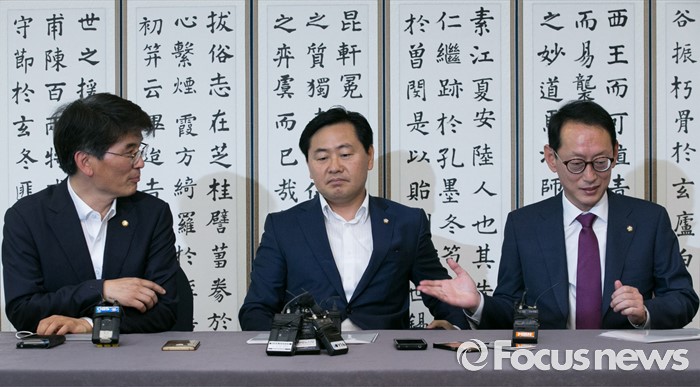 (서울=포커스뉴스) 6일 오후 서울 여의도 국회 귀빈식당에서 열린 20대 국회 원구성 협상 등을 위한 회동에 참석한 김도읍(오른쪽) 새누리당 원내수석부대표, 박완주(왼쪽) 더불어민주당 원내수석부대표, 김관영 국민의당 원내수석부대표가 대화하고 있다.