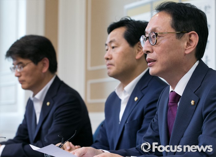 (서울=포커스뉴스) 6일 오후 서울 여의도 국회 귀빈식당에서 열린 20대 국회 원구성 협상 등을 위한 회동에 참석한 김도읍(오른쪽) 새누리당 원내수석부대표, 박완주(왼쪽) 더불어민주당 원내수석부대표, 김관영 국민의당 원내수석부대표가 취재진을 향해 발언하고 있다.