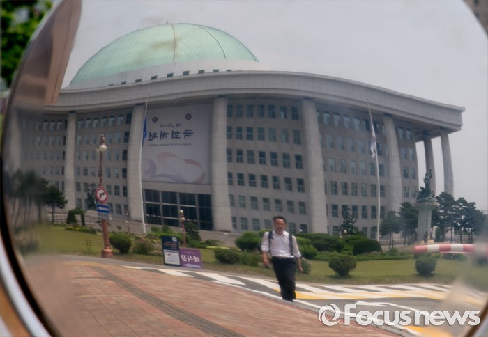 (서울=포커스뉴스) 20대 국회 원구성 법정 시한을 하루 앞둔 6일 오후 서울 여의도 국회 정문에 세워진 안내표지판에 본청 모습이 보이고 있다.