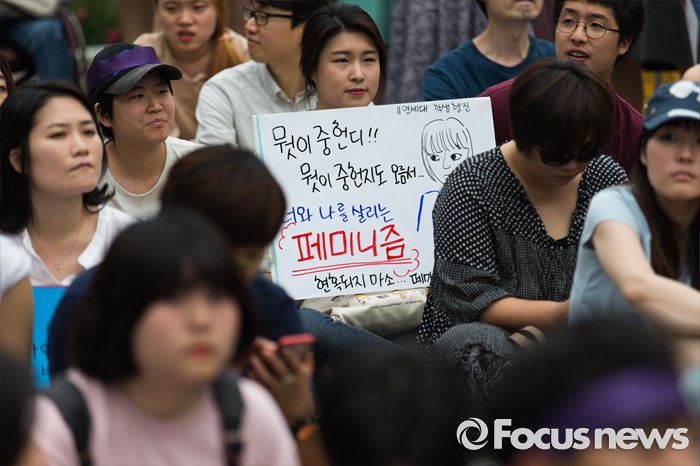 | △ 여성 혐오 규탄 손팻말 든 여성단체 회원 |