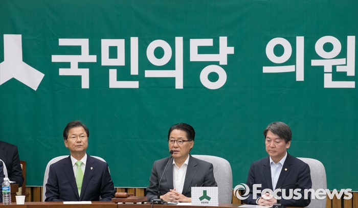 (서울=포커스뉴스) 7일 오전 서울 여의도 국회에서 열린 국민의당 의원총회에 참석한 박지원(가운데) 원내대표가 발언하고 있다.