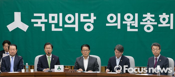 (서울=포커스뉴스) 7일 오전 서울 여의도 국회에서 열린 국민의당 의원총회에 참석한 천정배(왼쪽 두번째) 공동대표가 모두발언을 하고 있다.