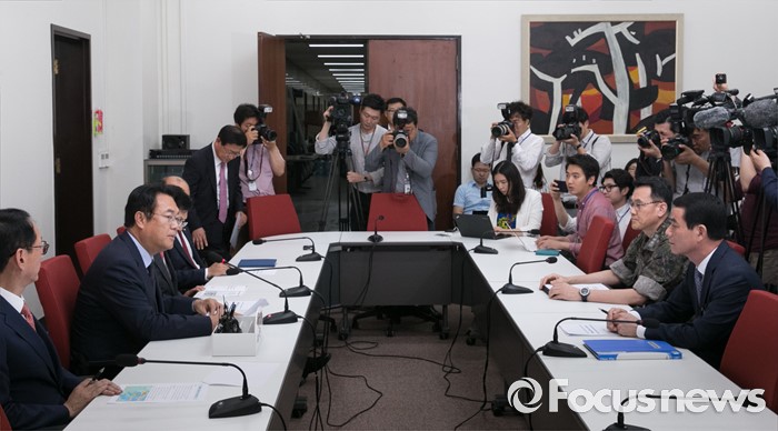 (서울=포커스뉴스) 정진석 새누리당 원내대표 등 의원들이 7일 오전 서울 여의도 국회에서 이춘재 해경조정관, 김명수 합참 작전2처장 등으로부터 연평도 어민들 중국어선 나포 관련 현안보고를 받고 있다.