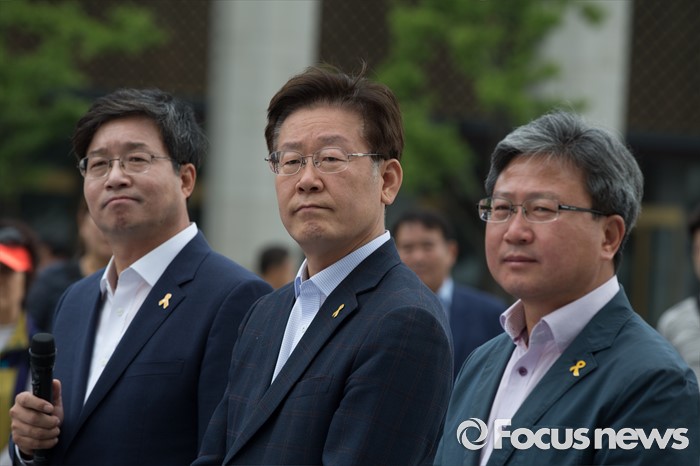 (서울=포커스뉴스) 7일 오전 서울 종로구 광화문광장에서 염태영(왼쪽부터) 수원시장, 이재명 성남시장, 채인석 화성시장이 정부의 지방재정개편안에 반대하는 단식농성 기자회견을 열고 있다.