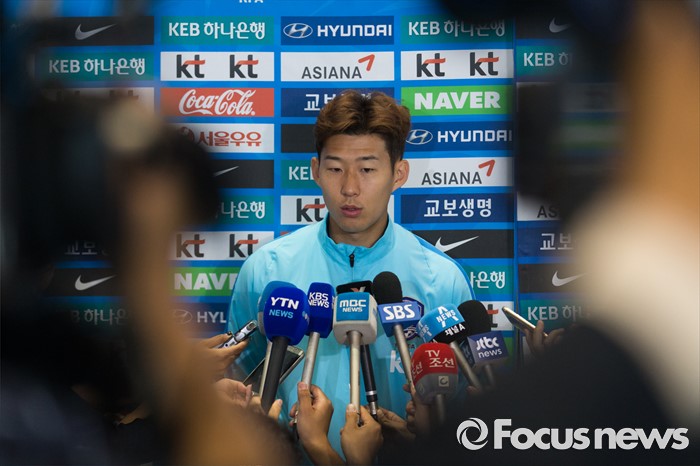 (인천공항=포커스뉴스) 유럽 원정에 나서 두 차례 평가전을 치러 1승 1패(스페인 1-6패, 체코 2-1승)를 거둔 대한민국 축구 국가대표팀 손흥민이 7일 오후 인천국제공항을 통해 귀국 후 취재진 질문에 답하고 있다.