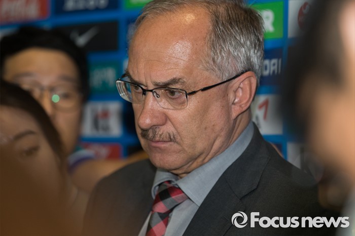 (인천공항=포커스뉴스) 유럽 원정에 나서 두 차례 평가전을 치러 1승 1패(스페인 1-6패, 체코 2-1승)를 거둔 대한민국 축구 국가대표팀 슈틸리케 감독이 7일 오후 인천국제공항을 통해 귀국 후 취재진 질문을 듣고 있다.