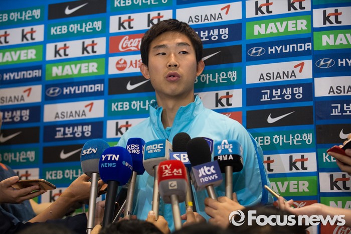 (인천공항=포커스뉴스) 유럽 원정에 나서 두 차례 평가전을 치러 1승 1패(스페인 1-6패, 체코 2-1승)를 거둔 대한민국 축구 국가대표팀 윤빛가람이 7일 오후 인천국제공항을 통해 귀국 후 취재진 질문에 답하고 있다.