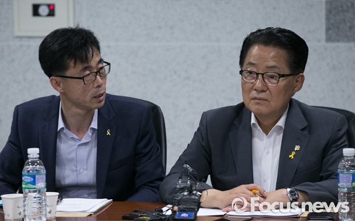 (서울=포커스뉴스) 박지원(오른쪽) 국민의당 원내대표가 7일 오후 서울 여의도 국회 의원회관에서 세월호 특별법 개정안과 관련 전명선 4·16가족협의회 운영위원장, 등 관계자들과 면담을 하고 있다.