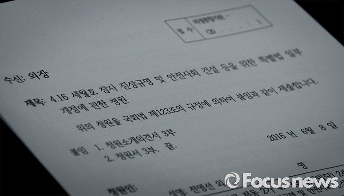 | △ 세월호 특별법 개정안 국회 청원서 |