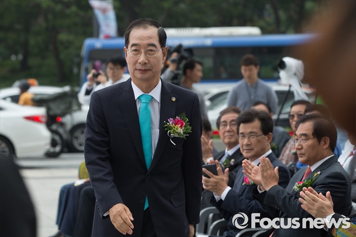 (서울=포커스뉴스) 7일 오후 서울 종로구 광화문 광장에서 열린 '2016 청주(충북) 세계무예마스터십 D-100성공기원행사'에 참여한 한덕수 조직위원장이 축사를 위해 이동하고 있다.