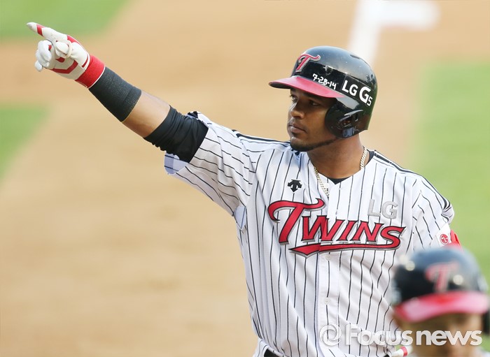 | △ 선제 2점 홈런친 LG 히메네스-가족을 위하여 |