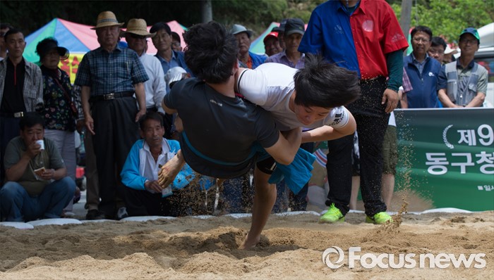 (대전=포커스뉴스) 9일 오후 (음력5월5일) 단오를 맞아 대전 동구 쌍청당공원에서 열린 판암골 단오한마당에서 주민들이 씨름을 하고 있다.