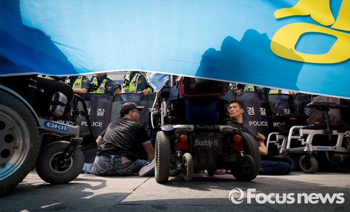 | △ 가로막힌 장애인들 |