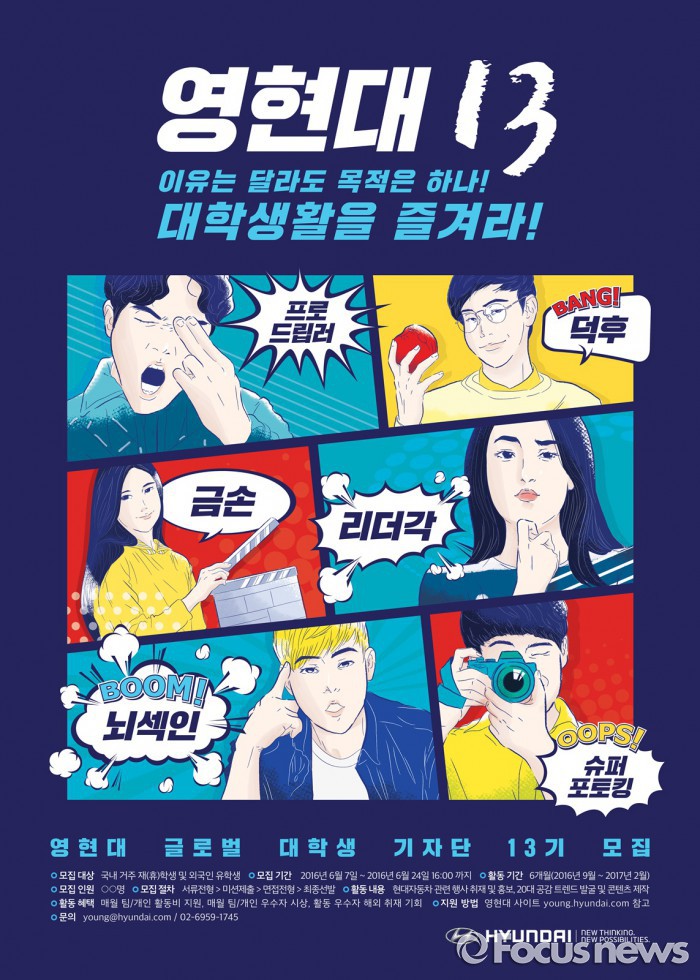 (서울=포커스뉴스) 현대자동차가 13기 '영(young)현대 글로벌 대학생 기자단'을 24일까지 모집한다.