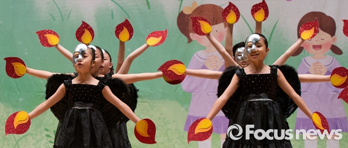 (세종=포커스뉴스) 8일 오후 세종시 조치원읍 문화예술회관에서 열린 제4회 세종 119소방동요 경연대회에 참가한 도담초등학교 어린이들이 율동을 선보이고 있다.
