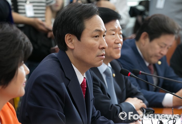 (서울=포커스뉴스) 9일 오전 서울 여의도 국회에서 열린 더불어민주당 가계부채TF, 현황 및 정부대책 보고에 참석한 우상호 원내대표가 인사말을 하고 있다.